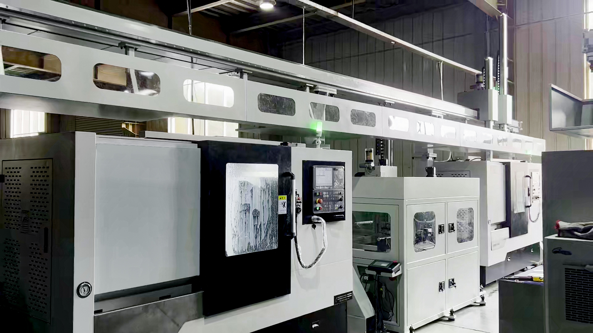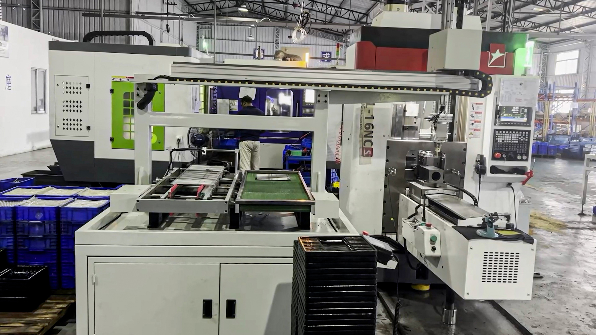 銑打機床自動上下料桁架機械手+AGV料架案例視頻,