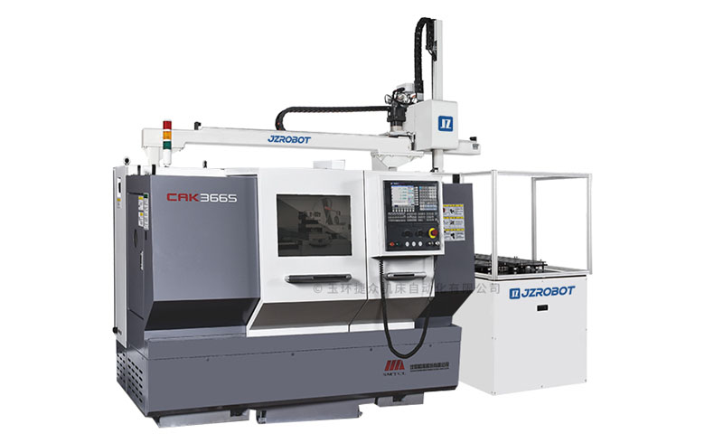 數控車床CAK3665具有高效伺服主電機,低能耗,大扭矩的特點;全自動機械手數控車床的送料機構由上料機構與收料機構組成,能夠有效地配合機械手抓放料。