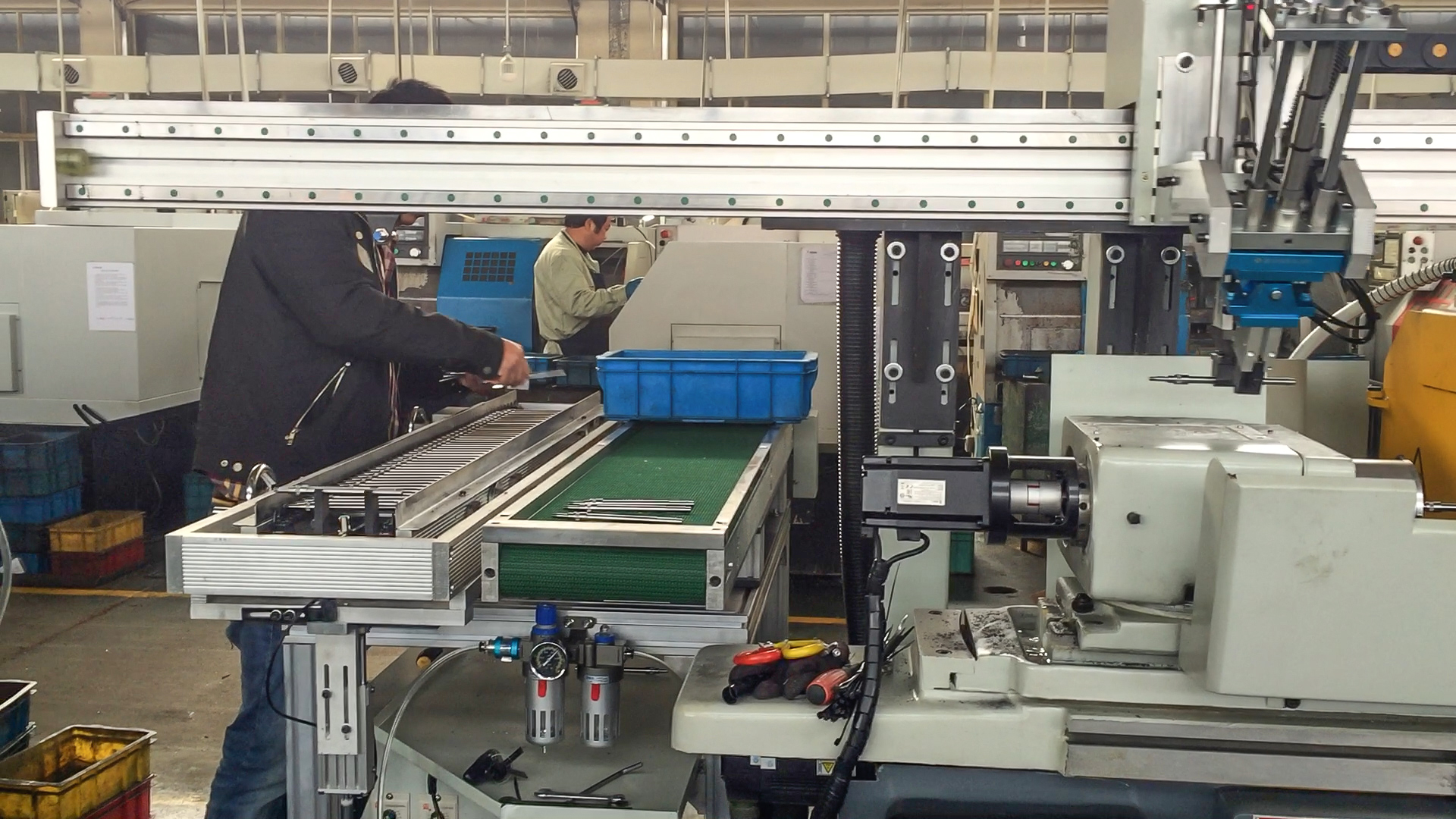視頻簡介:數控外圓磨床雙連機桁架機械手是一種自動化搬運設備,它與數控外圓磨床雙連機配合使用,用于實現工件的自動裝夾、搬運和卸載。03